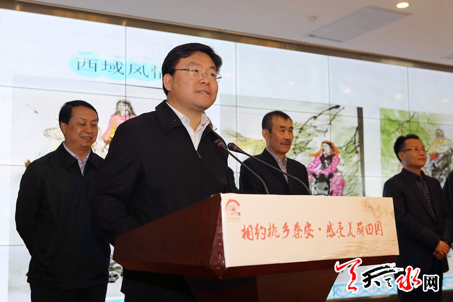 市委常委、副市長李曉東說,秦安縣自古人杰地靈,文化底蘊(yùn)厚重,歷史上曾出現(xiàn)過很多知名的書畫家,近年來書畫新秀更是層出不窮,在社會各界的共同努力下,文化藝術(shù)事業(yè)得到了長足發(fā)展。今天中國美術(shù)家協(xié)會天水創(chuàng)作寫生基地書畫藝術(shù)家走進(jìn)桃鄉(xiāng)秦安暨趙萬順“百雞鬧春”畫展在這里舉行,這是秦安縣乃至全市書畫界的一件喜事,對于提升廣大書畫愛好者的創(chuàng)作素養(yǎng)、豐富廣大人民群眾的文化生活、推動(dòng)天水市及秦安縣文化事業(yè)的繁榮發(fā)展具有十分重要的意義。