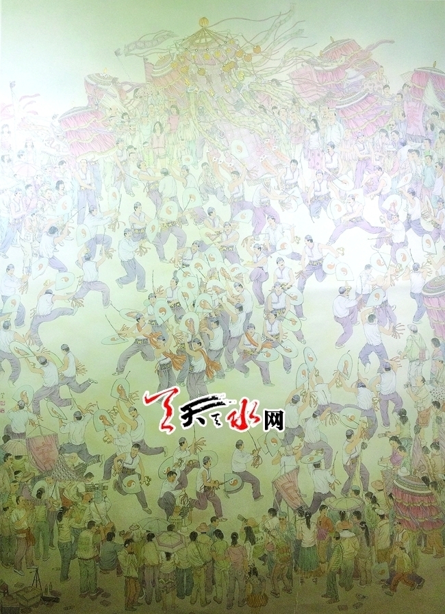 “我們?cè)诒本W(xué)習(xí)時(shí),他的這幅作品一度在參展時(shí)被否定,但他卻堅(jiān)持說(shuō)這件作品雖然對(duì)展覽沒(méi)有多大意義,但對(duì)于自己的家鄉(xiāng)和對(duì)宣傳武山非物質(zhì)文化遺產(chǎn)來(lái)說(shuō)卻意義非常大,所以便一直堅(jiān)持畫(huà)完了這幅作品?!壁w炳東對(duì)于藝術(shù)的執(zhí)著讓陳黎頗多感慨。