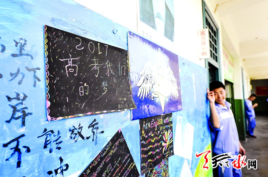 “2017高考,我們的夢”,學生們在教室外墻貼上標語,為自己加油鼓勁。一位高三學生說:“雖然考前所剩時間不多,但只要掌握策略,盡最大努力有效復習,無悔地付出就是對青春最好的回報。”