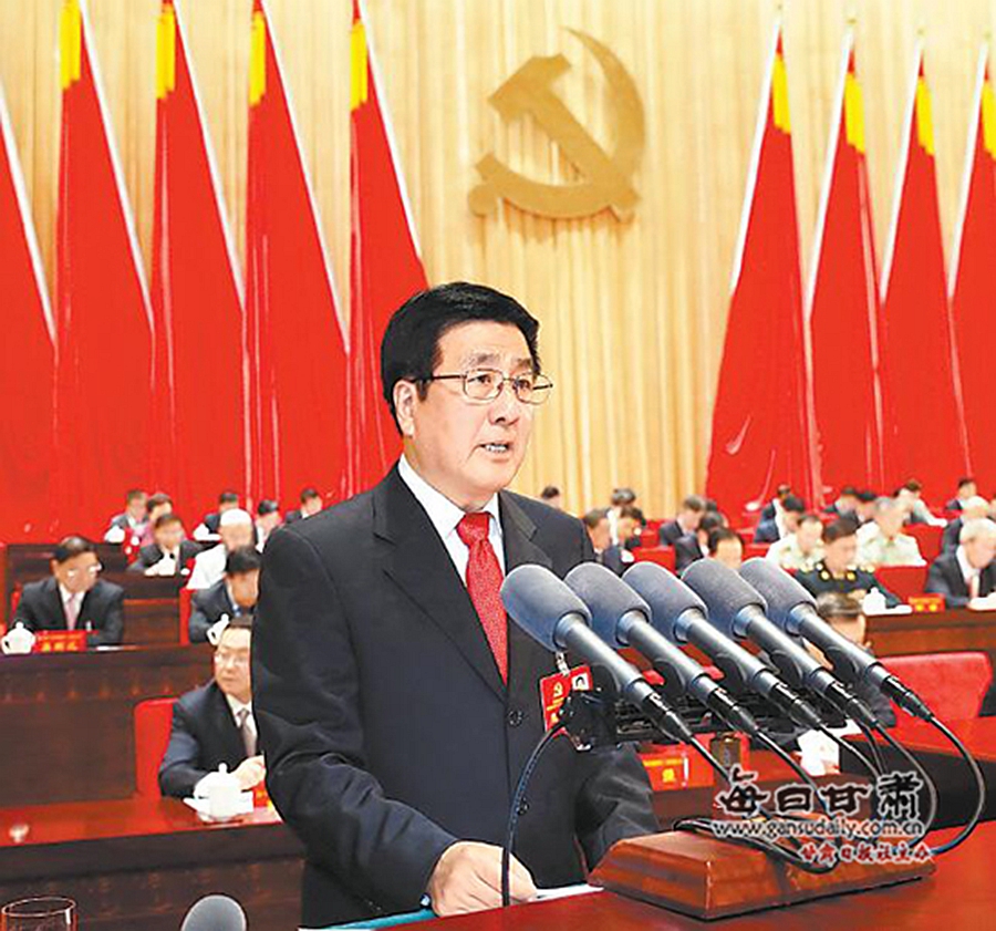 林鐸代表中國共產(chǎn)黨甘肅省第十二屆委員會向大會作報告