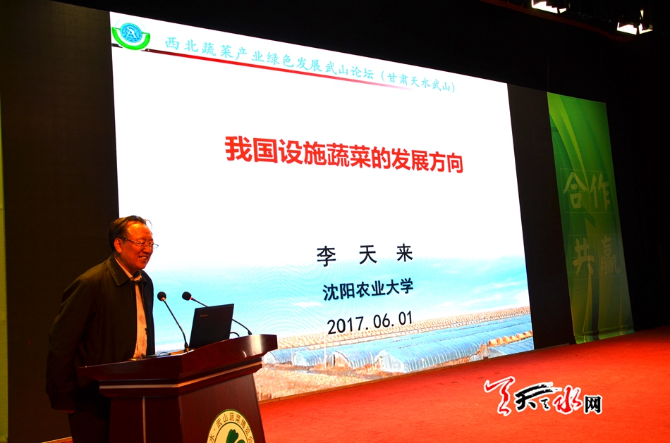 天天天水網(wǎng)訊(記者 小軍 文都 楊旭 曉龍)6月1日,由中國(guó)園藝學(xué)會(huì)、甘肅省園藝學(xué)會(huì)、甘肅省農(nóng)業(yè)大學(xué)主辦的西北蔬菜產(chǎn)業(yè)綠色發(fā)展武山論壇專家報(bào)告會(huì)在武山縣群眾文化活動(dòng)中心禮堂舉行。中國(guó)工程院院士、沈陽(yáng)農(nóng)業(yè)大學(xué)副校長(zhǎng)李天來,中國(guó)農(nóng)業(yè)科學(xué)院蔬菜花卉研究所研究員謝丙炎等專家學(xué)者作了專題報(bào)告。