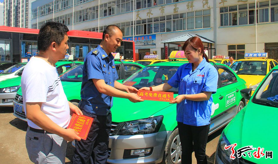 ????天天天水網(wǎng)訊【記者 張文都】一年一度的高考是廣大學(xué)生人生的第一場考驗,也承載著社會對莘莘學(xué)子的一片關(guān)愛之情,6月6日,高考來臨之際,為方便秦州區(qū)、麥積區(qū)城區(qū)考生出行,天水市運管局統(tǒng)一安排組織“2017愛心送考”活動,315輛出租車和470輛公交車全部免費為考生出行“保駕護航”。