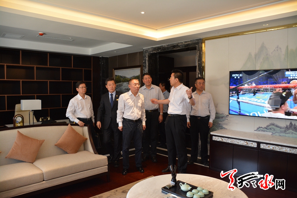 天天天水網(wǎng)訊【全媒體記者吳麗娜】6月12日下午,天水市委書記王銳,市委副書記、代市長王軍帶領(lǐng)相關(guān)部門負責人來到天水賓館,對2017年節(jié)會主要接待賓館的服務(wù)保障工作進行了督察。王銳強調(diào),各相關(guān)部門和單位一定要牢固樹立“一盤棋”思想,提高認識,主動對接,精心籌備,細化工作,加強協(xié)調(diào)配合,全力做好節(jié)會的各項服務(wù)保障工作,確保節(jié)會圓滿成功舉辦。