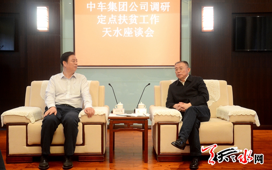 在13日下午召開的座談會上,市委書記王銳代表市委、市政府對劉化龍一行的到來表示歡迎,對中車集團(tuán)為天水提供的扶貧幫助表示感謝,并簡要介紹了天水基本市情和精準(zhǔn)扶貧精準(zhǔn)脫貧工作。他說,天水是隴東南交通樞紐和物流中心,國家規(guī)劃建設(shè)的關(guān)中—天水經(jīng)濟(jì)區(qū)次核心城市、絲綢之路經(jīng)濟(jì)帶重要節(jié)點城市,交通區(qū)位優(yōu)勢明顯、歷史文化底蘊(yùn)深厚、旅游資源豐富獨特、自然生態(tài)得天得厚、農(nóng)業(yè)特色優(yōu)勢突出、工業(yè)經(jīng)濟(jì)實力雄厚、人力資源充足穩(wěn)定。近年來,天水經(jīng)濟(jì)社會發(fā)展勢頭良好,全市干部群眾干事創(chuàng)業(yè)勁頭足,脫貧攻堅成效顯著。希望中車集團(tuán)公司能夠繼續(xù)關(guān)注和支持天水市的經(jīng)濟(jì)社會發(fā)展及精準(zhǔn)扶貧精準(zhǔn)脫貧工作,不斷加大對天水的幫扶力度;發(fā)揮中車集團(tuán)公司資源優(yōu)勢,與天水在裝備制造、產(chǎn)業(yè)發(fā)展、人才培養(yǎng)等方面開展合作,為天水市精準(zhǔn)脫貧工作添磚加瓦。
