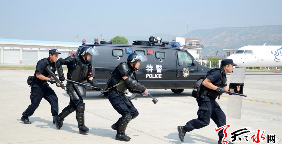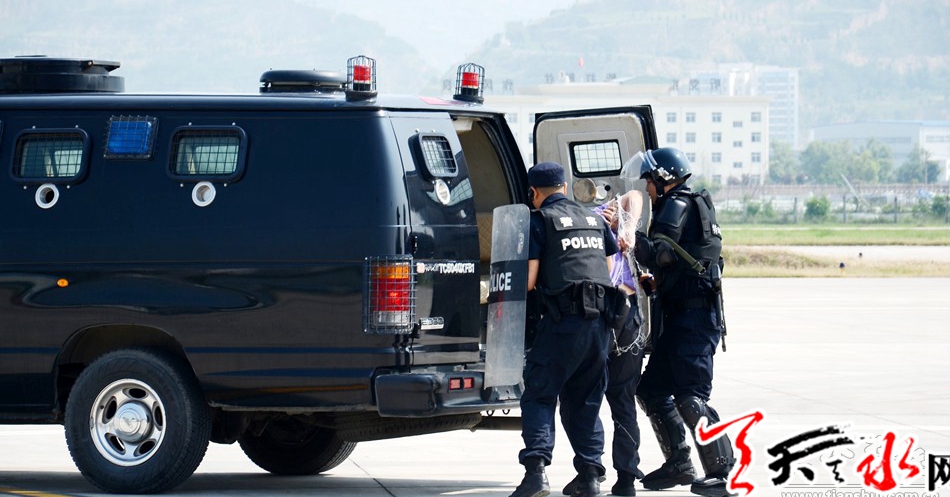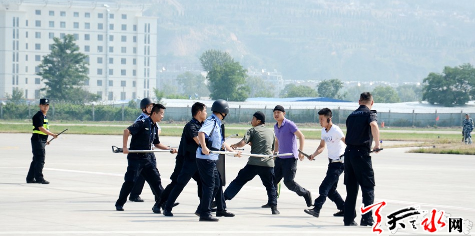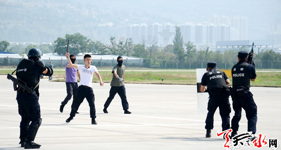 ????天天天水網(wǎng)訊【記者趙蔓】6月16日上午10點,天水機場一航班過站期間,4名“歹徒”手持兇器突然從草坪沖出,里應外合企圖沖擊航空器,分別被機場公安與機上安全員擊斃、制服,機場公司與地方反恐、消防、醫(yī)療急救等相關部門迅速到位展開應急處置。這是天水機場與華夏航空公司聯(lián)合開展的反恐防爆應急處置演練上演的驚險一幕。