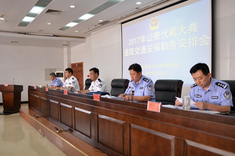 ???天天天水網(wǎng)訊 ?6月18日下午3時(shí),天水市公安局交警支隊(duì)召開(kāi)全體民警大會(huì),貫徹落實(shí)市委、市政府、市公安局及支隊(duì)“6·5”會(huì)議精神,對(duì)2017年公祭中華人文始祖伏羲大典活動(dòng)交通安保工作進(jìn)行安排和部署。市公安局黨委委員、副局長(zhǎng)楊金生出席會(huì)議并講話,會(huì)議由交警支隊(duì)副政委黃泰生主持。