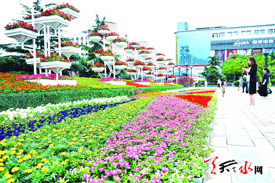 花團錦簇迎盛會,繽紛鮮花飾龍城。六月秦州的城區(qū)街道、商鋪門店、什字路口、高速公路出口,被數十萬盆鮮花組成的花箱、花缽、花桶、花柱、花帶,裝點的喜慶祥和。