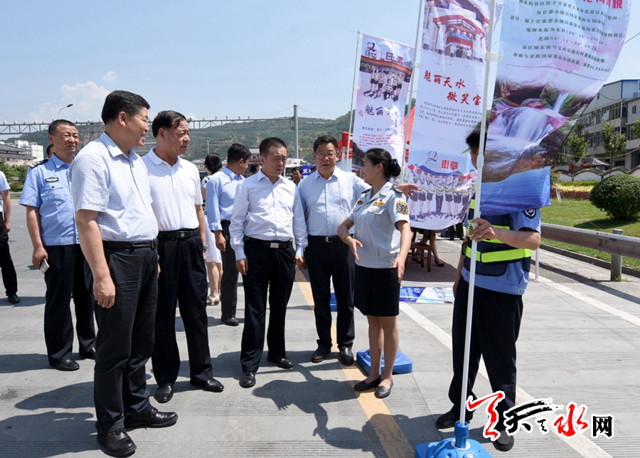 督察中,王銳一行先后來(lái)到天水高速公路西出口、天水賓館、天水會(huì)展中心、伏羲廣場(chǎng)、伏羲廟,重點(diǎn)對(duì)節(jié)會(huì)接待線路及重點(diǎn)路段環(huán)境整治、氛圍營(yíng)造、接待服務(wù)及公祭伏羲大典現(xiàn)場(chǎng)環(huán)境布置、大典儀式籌備、安全保衛(wèi)等各項(xiàng)節(jié)會(huì)籌備工作進(jìn)展情況進(jìn)行了現(xiàn)場(chǎng)督察,聽(tīng)取了情況匯報(bào),并就進(jìn)一步做好籌備工作提出了指導(dǎo)意見(jiàn)。