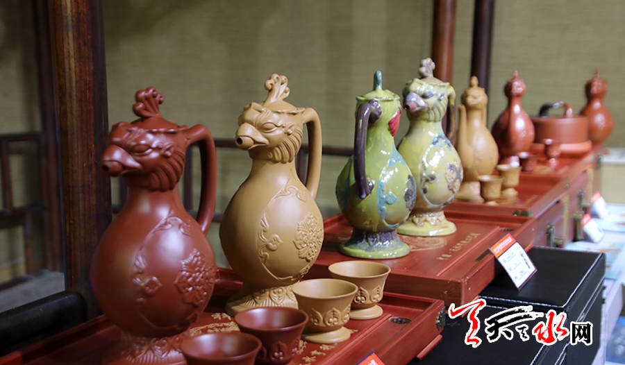 此次展覽主題為“文化創(chuàng)造價(jià)值·創(chuàng)意成就未來”,展出的產(chǎn)品有“福禧”文創(chuàng)產(chǎn)品、“大唐鳳壺”、天水奇石、秦州十景手撕書畫、秦州文化瓷、3D玩石畫、宗跡泥皮畫、旅游文化茶等。