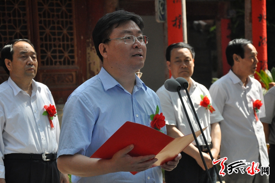 中共天水市市委常委、副市長李曉東、市人大副主任安志宏、市政協(xié)副主席蘇定武、甘肅省書協(xié)顧問秦理斌以及江西省、河南省和河北省文聯主席出席了開展儀式。儀式由天水市文聯主席王進文主持。