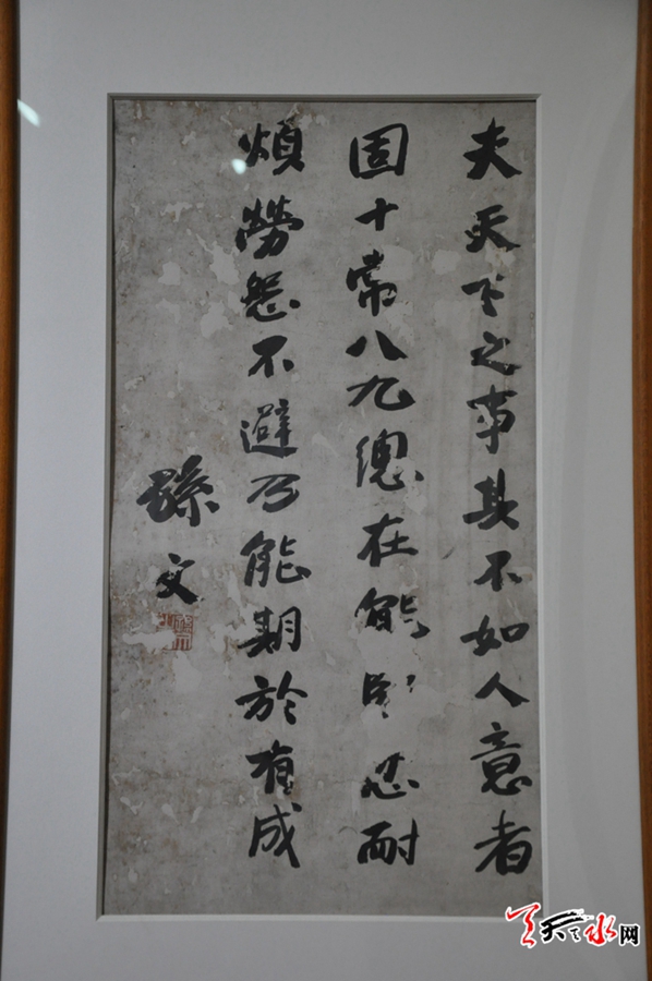 這次展覽得到兩岸書畫藝術家和相關收藏單位的大力支持,共展出孫中山、郭沫若、于右任、沈從文、趙樸初、沙孟海、陳立夫、孔祥熙等海峽兩岸名人和書畫大家作品,以及我市書畫家作品共130余幅。書法作品真、草、隸、篆各體俱全,亦或拙撲、亦或靈修,繪畫作品傳統(tǒng)繪畫和西洋繪畫并呈。
