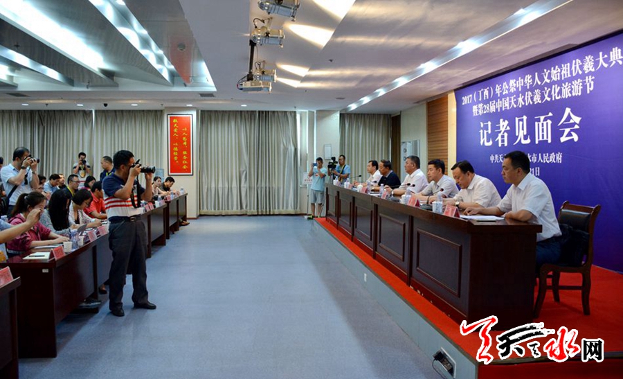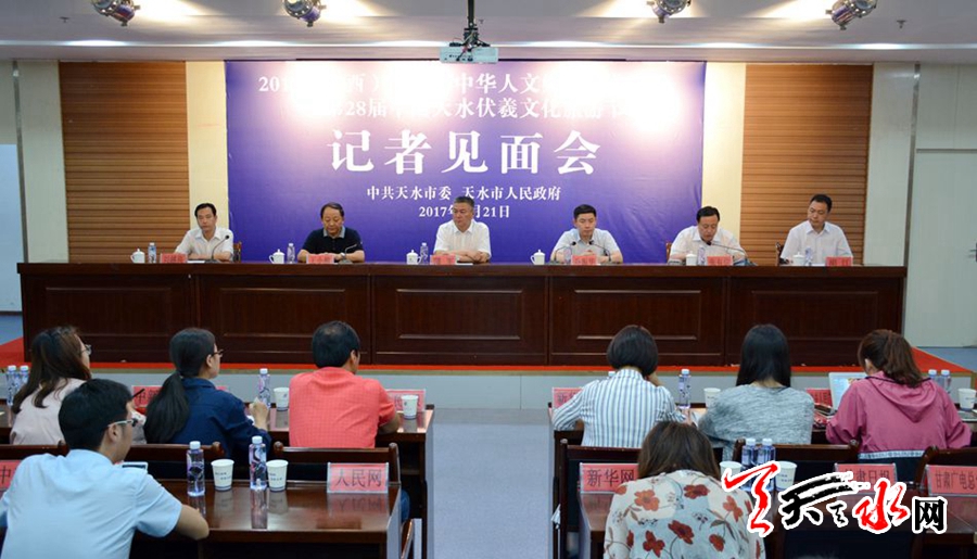 天天天水網訊【全媒體記者馮麗娟 吳麗娜】6月21日下午,天水市委、市政府在華天電子賓館舉行2017(丁酉)年公祭中華人文始祖伏羲大典暨第28屆中國天水伏羲文化旅游節(jié)記者見面會。