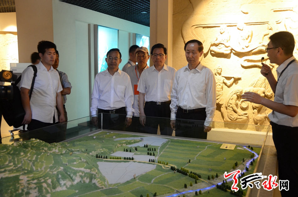 ? 6月22日,全國政協(xié)副主席王家瑞參加完2017(丁酉)年公祭伏羲大典后,到伏羲學(xué)院、市博物館及中國中西部名優(yōu)特新產(chǎn)品暨旅游區(qū)域聯(lián)盟城市旅游商品展館進(jìn)行了參觀。省政協(xié)主席馮健身及市領(lǐng)導(dǎo)雷鳴、何東、王振宇等參加有關(guān)參觀活動(dòng)。? 全媒體記者 郝勤學(xué) 攝
