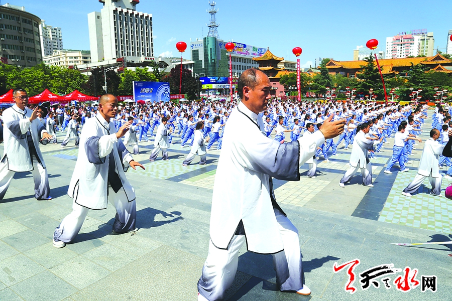 ?????6月22日,2017年甘肅省全民健身運(yùn)動(dòng)會(huì)“甘肅銀行·羲皇杯”太極拳比賽暨“問道伏羲”羲皇故里伏羲太極拳展演在龍城廣場(chǎng)開幕。省體育局局長楊衛(wèi),甘肅銀行總行黨委副書記、行長劉青,市人大常委會(huì)副主任王曉琴出席開幕式,副市長張建杰致辭。記者 馬凱 攝