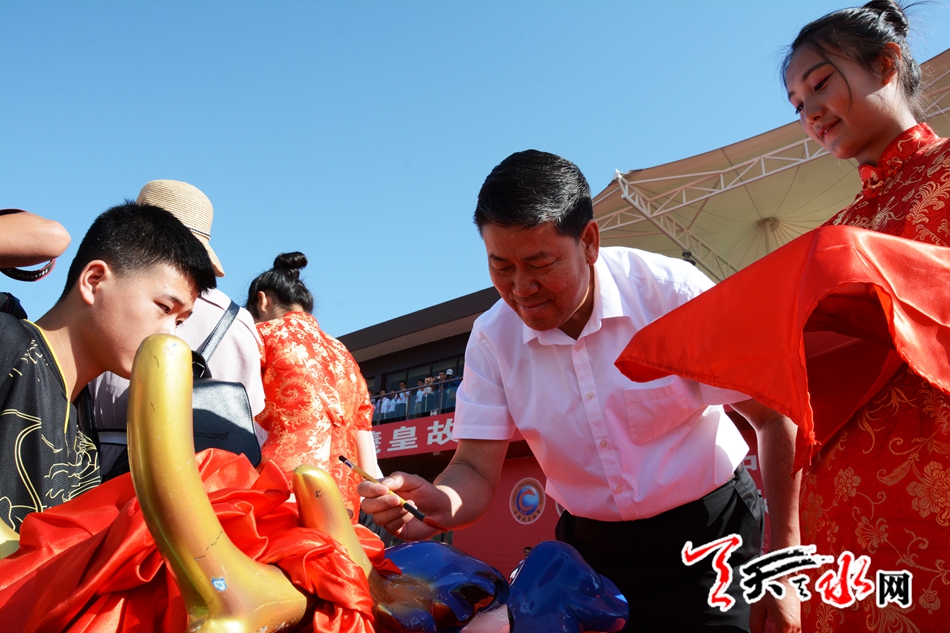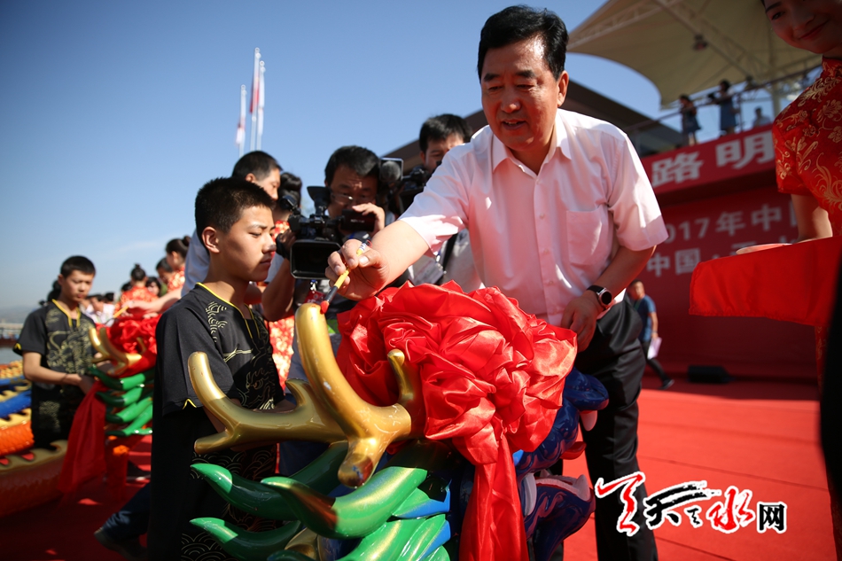 天水市委副書記、代市長王軍為參賽龍舟披紅點睛