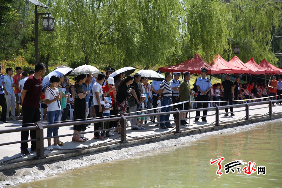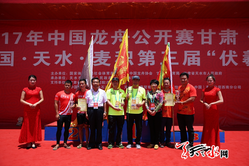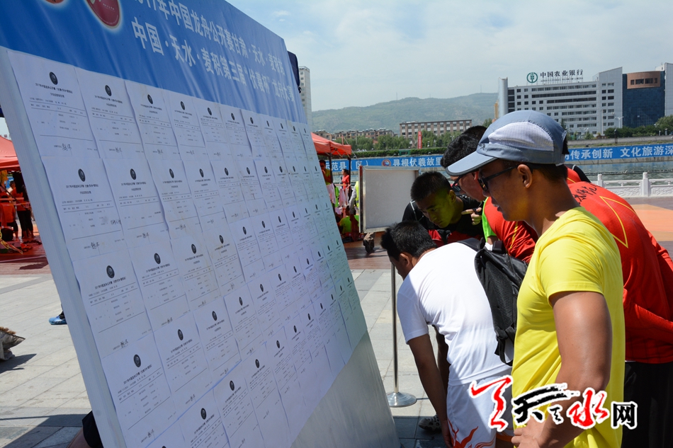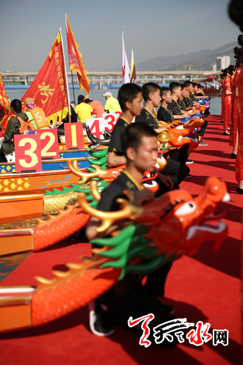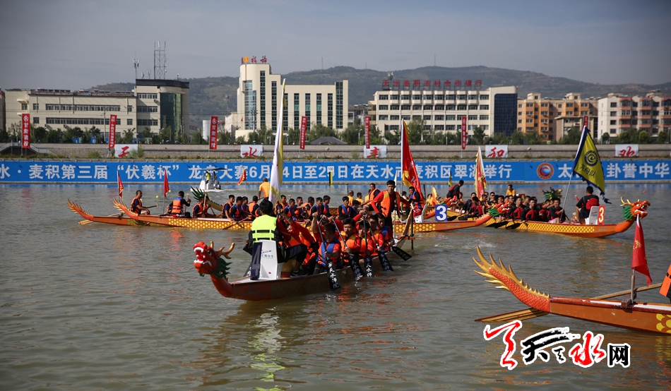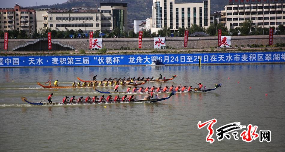 據(jù)了解,由國家體育總局社會體育指揮中心、中國龍舟協(xié)會、甘肅省體育局、天水市人民政府主辦,天水市麥積區(qū)人民政府、天水市體育局承辦,甘肅建投天水建設(shè)管理公司協(xié)辦的2017年中國龍舟公開賽(甘肅·天水·麥積站)暨中國·天水·麥積第三屆“伏羲杯”龍舟大賽共分公開組、本地組和迷你龍舟組三個組別,公開組設(shè)置22人龍舟200米、500米直道競速賽和5000繞標(biāo)賽三個項目,來自廣州花雨華僑、廣東順德、山東超體、浙江蒼南巨龍、廣州江門、廣東九江及貴州、四川、湖南、江蘇南京、天水師院等12支龍舟隊312名運動員參加比賽;本地組設(shè)置12人龍舟200米和500米直道競速賽兩個項目,來自秦州、甘谷、武山、清水、秦安、張川等縣區(qū)、天水師院及麥積區(qū)教體、衛(wèi)計、水務(wù)、林業(yè)等部門11支代表隊176名運動員參賽;迷你龍舟組設(shè)置5人制200米直道競速賽一個項目,運動員由公開組各代表隊組成。6月24日舉行公開組、本地組200米直道競速、500米直道競速預(yù)賽,25日進行公開組、本地組200米直道競速、500米直道競速決賽和5000米繞標(biāo)賽。