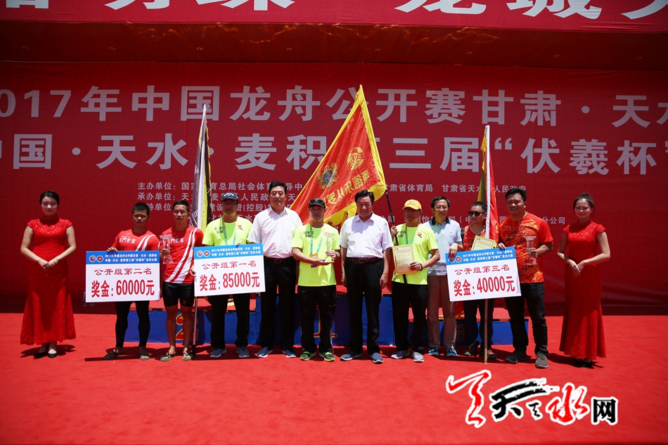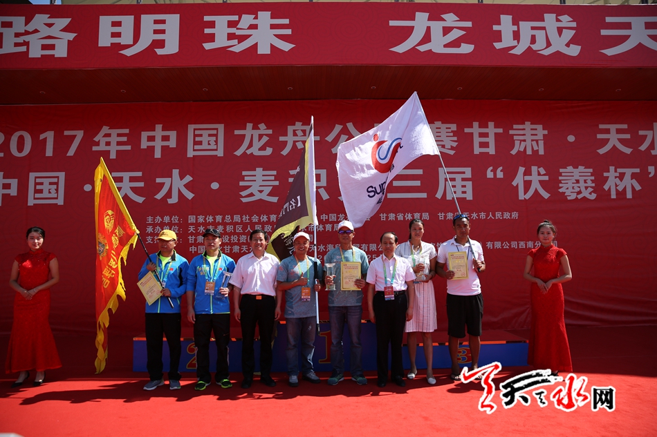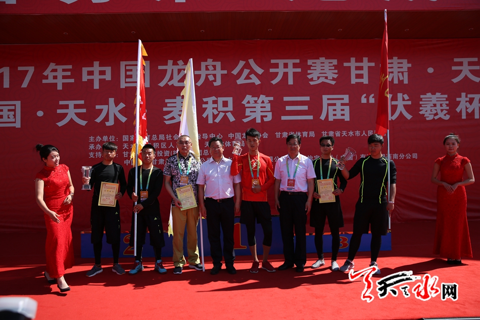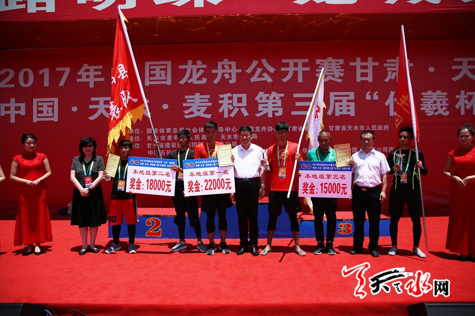 ????經(jīng)過兩天的激烈比拼,樂從羅浮宮、名門世家九江、江門基達(dá)分別獲得迷你龍舟組200米直道競速賽、公開組22人龍舟500米直道競速賽、22人龍舟5000米繞標(biāo)賽及團體總分前三名,天水師院辰耀龍舟隊、武山縣龍舟隊、秦州區(qū)龍舟隊分別獲得本地組12人龍舟200米直道競速賽、12人龍舟500米直道競速賽和本地組團體總分前三名,名門世家九江、樂從羅浮宮、山東超軍體育分別獲得公開組22人龍舟200米直道競速賽前三名。