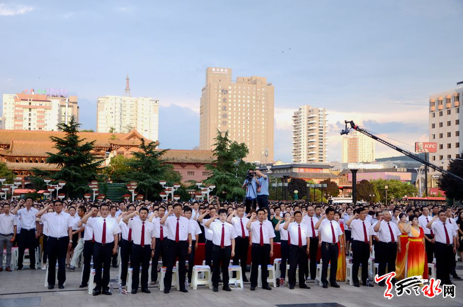偌大的廣場(chǎng),人潮涌動(dòng)。來(lái)自秦州區(qū)各單位的黨員代表懷著敬仰之情一同慶祝建黨96周年華誕。雷鳴和全體黨員起立,面向黨旗,舉起右手,以虔誠(chéng)之心,深情而莊嚴(yán)地重溫入黨誓詞:“我志愿加入中國(guó)共產(chǎn)黨,擁護(hù)黨的綱領(lǐng),遵守黨的章程……”嘹亮的宣誓聲在廣場(chǎng)的上空回蕩。