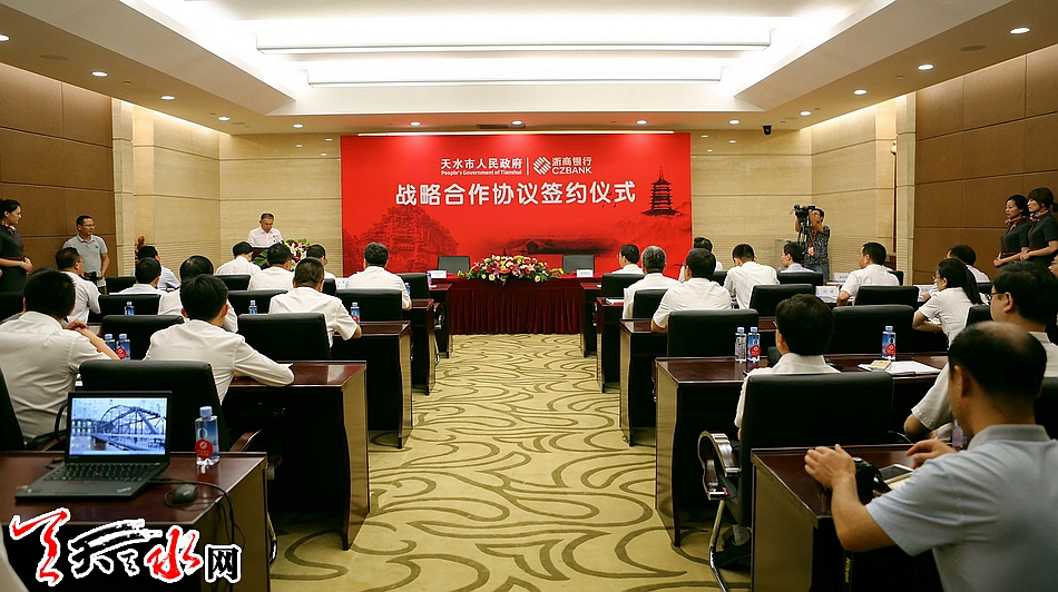 ????市委書記王銳,市委副書記、市長王軍,浙商銀行總行副行長姜雨林,市政府秘書長王祥林,浙商銀行總行金融市場風險控制部經(jīng)理助理王海云、授信評審物流產(chǎn)業(yè)評審中心總經(jīng)理來中偉,浙商銀行蘭州分行行長申健,浙商銀行天水分行行長閆斌等出席簽約儀式。