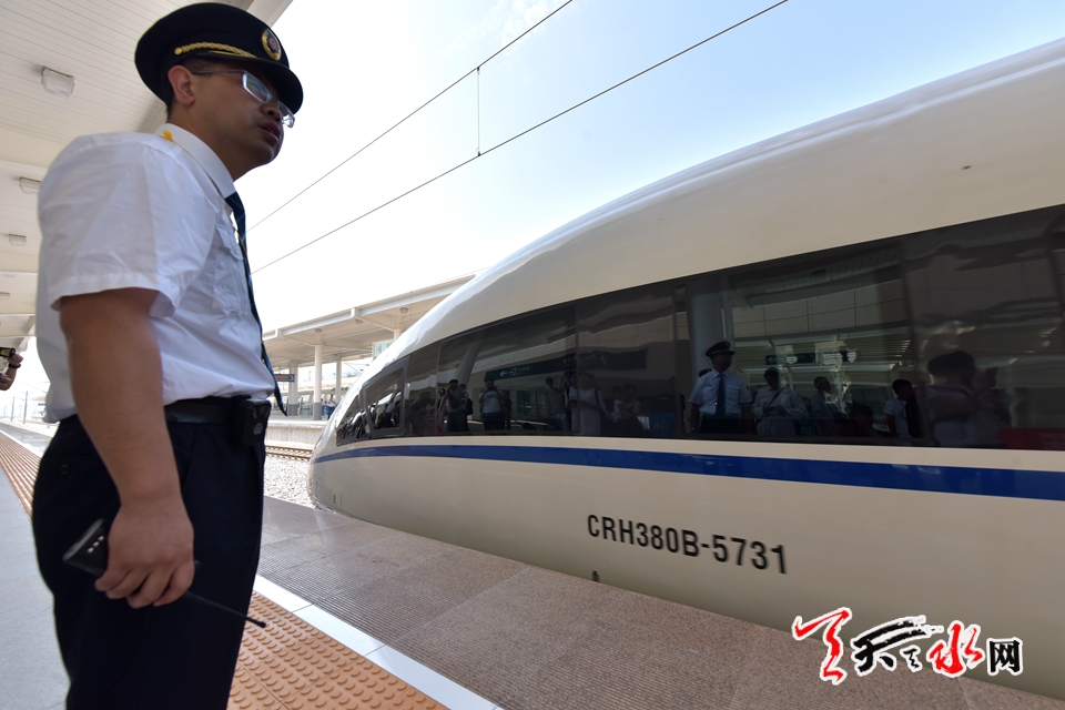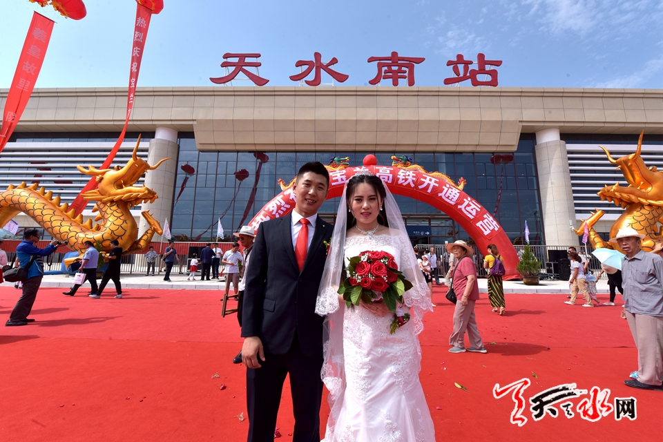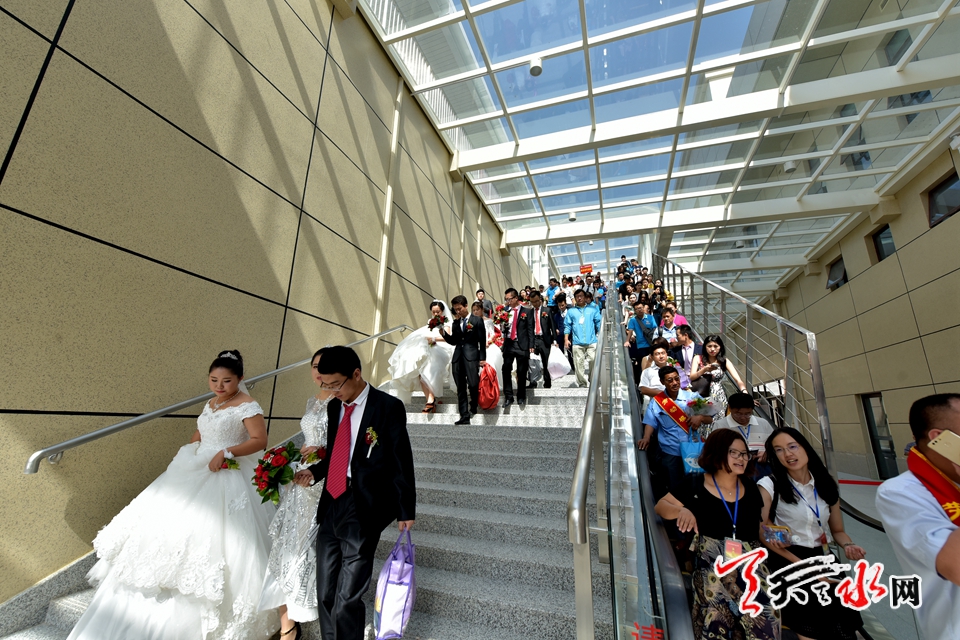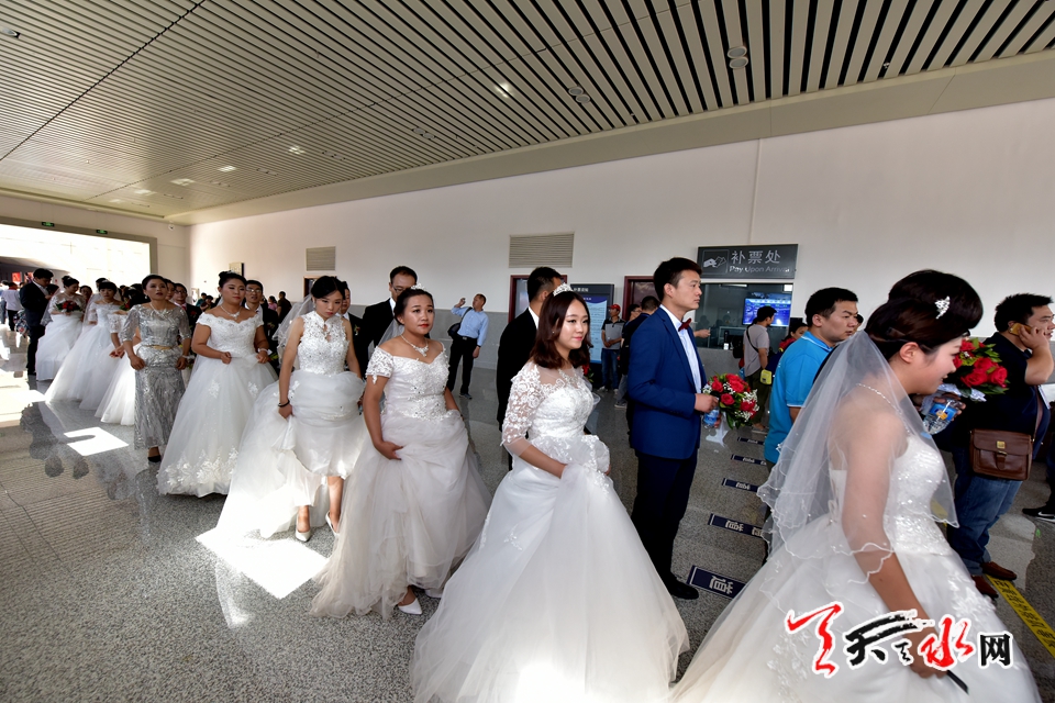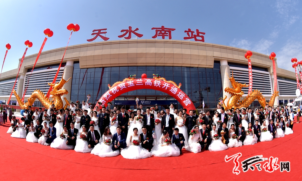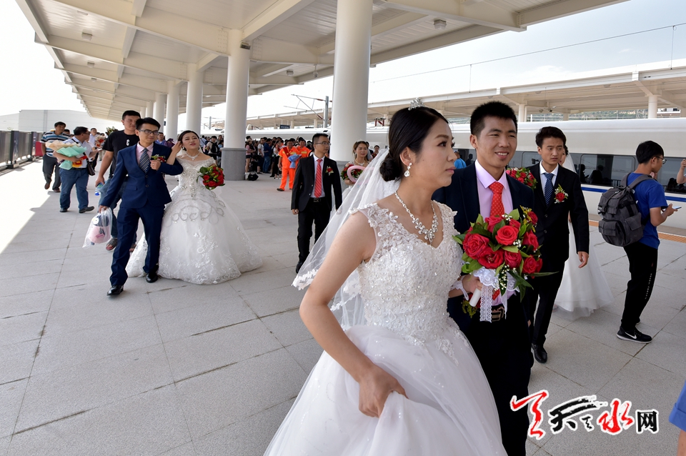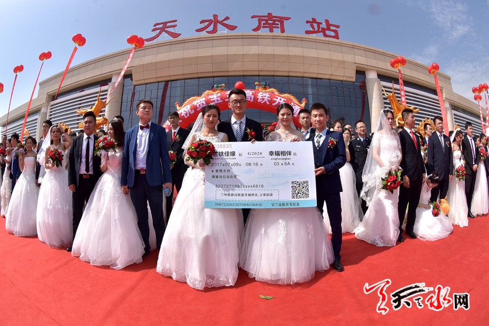 ????7月9日,在備受社會(huì)各界關(guān)注的寶蘭高鐵開通運(yùn)營之際,由蘭州鐵路局團(tuán)委精心組織的百對(duì)新人高鐵集體婚禮盛裝登場(chǎng),當(dāng)日9時(shí)50分,天水南站迎來從蘭州西站發(fā)出的婚慶專列,來自蘭州鐵路局各基層站段和蘭州鐵路公安、中鐵二十一局等涉鐵單位的百對(duì)新人,以這種獨(dú)特的婚禮,在見證寶蘭高鐵開通運(yùn)營之時(shí),也以高鐵的名義見證了他們?nèi)松弥械闹匾獣r(shí)刻。