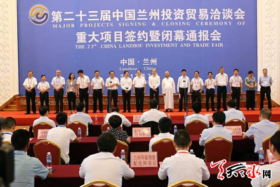 天天天水網(wǎng)蘭州電【全媒體記者郝勤學(xué)】7月9日下午,第二十三屆中國蘭州投資貿(mào)易洽談會重大項目簽約暨閉幕通報在在蘭州寧臥莊賓館舉行。