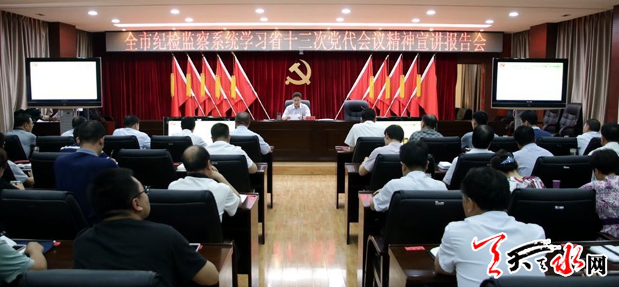 ????天天天水網(wǎng)訊【記者趙蔓】7月13日,全市紀(jì)檢監(jiān)察系統(tǒng)舉行學(xué)習(xí)貫徹省第十三次黨代會精神宣講報告會,市委宣講團(tuán)成員、市委常委、市紀(jì)委書記王國先深入解讀省第十三次黨代會精神。