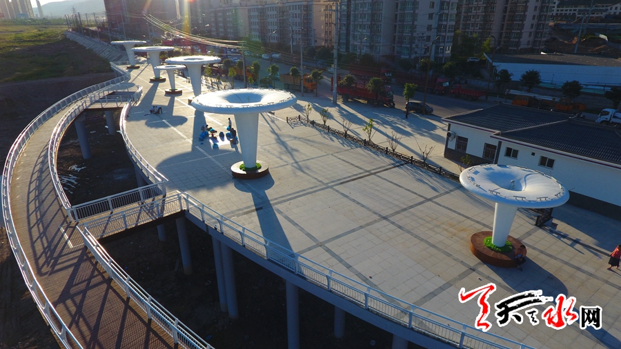 據(jù)了解,天水藉河生態(tài)公園人行景觀橋從2015年12月開始施工,橋長450多米,整座橋由主橋、北側(cè)輔道、南側(cè)輔道、棧道及棧道通道部分組成。橋體設(shè)計(jì)超前、構(gòu)思精巧,集藝術(shù)性、觀賞性、實(shí)用性于一體,將自然景觀、人文景觀與城市景觀完美融合,塑造了一個(gè)人、水、景交融互存的場景。整座橋橫跨藉河南北兩岸,把位于藉河兩岸的公園連接在了一起,其優(yōu)美的造型也成了藉河上的一處新景觀。