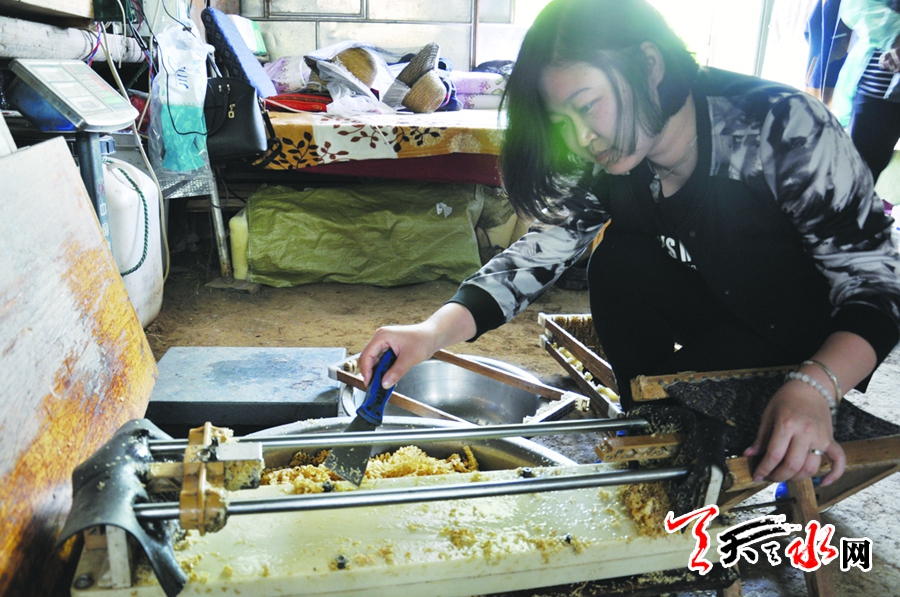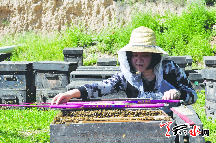 六月,正值鮮花盛開之際,記者來到麥積區(qū)東岔鎮(zhèn),追隨著養(yǎng)蜂人的腳步,親手放置巢礎(chǔ)、搖蜜、移蟲……第一次近距離接觸到了那神秘的“六角王國(guó)”。