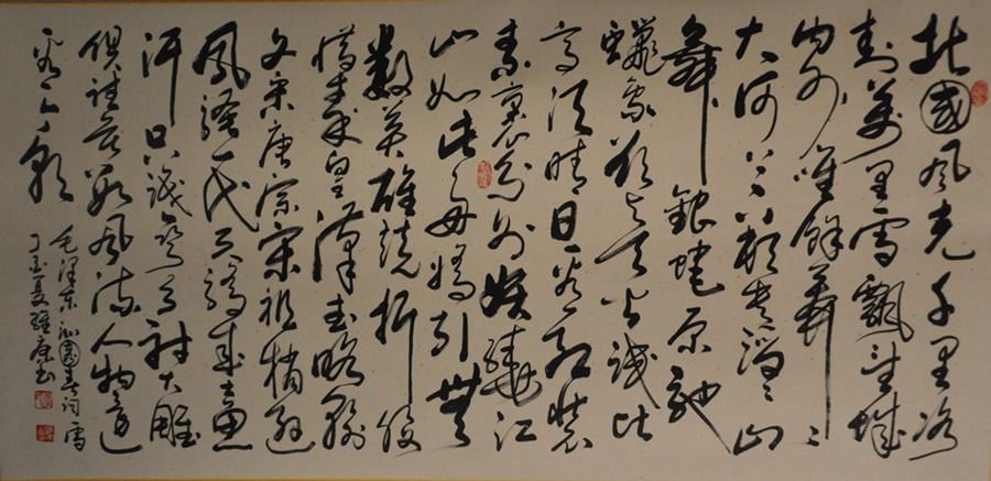 此后,李維康和其他人一樣,外出務(wù)工,結(jié)婚生子,日子如流水般一去不復(fù)。1995年,他帶著妻兒遠(yuǎn)赴新疆煤礦務(wù)工,期初幾年他在地面干活,后來聽工友們說下井能多掙錢,為了多掙一點錢,他開始下井打風(fēng)鉆。2009年的一天,他和往常一樣下井干活,手持風(fēng)鉆揮汗如雨,一個不小心,右手手套大拇指部位被高速旋轉(zhuǎn)的鉆頭卷入,他發(fā)現(xiàn)情況不妙,立馬扔掉風(fēng)鉆,可是已經(jīng)為時已晚,在他把手從手套里往出退的同時,纏卷在鉆頭上的手套撕扯掉了他右手大拇指的第一節(jié)手指并把戶口撕裂。后經(jīng)鑒定為工傷,煤礦賠付他幾萬元。傷心之地讓李維康難以滯留,他獨自一人發(fā)回家鄉(xiāng),處于愛好,他投資1萬元在楊家寺集市上開了一家“春風(fēng)畫廊”,以裝裱書畫謀生,并正式開始了他專業(yè)練習(xí)書法的歷程。