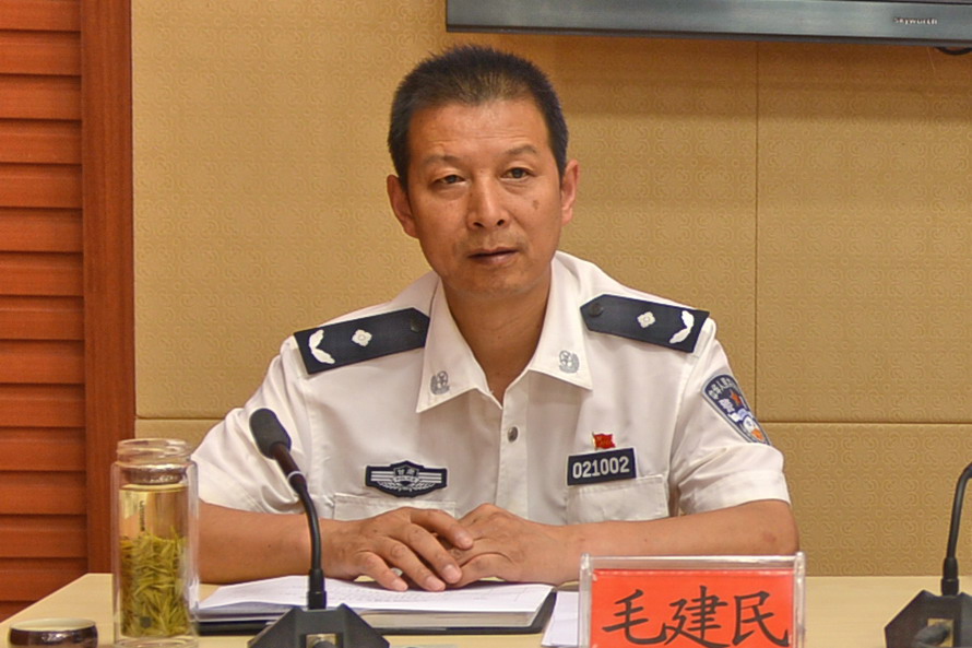 ????(市公安局交警支隊政委毛建民宣讀全市道路交通安全專項整治行動方案)