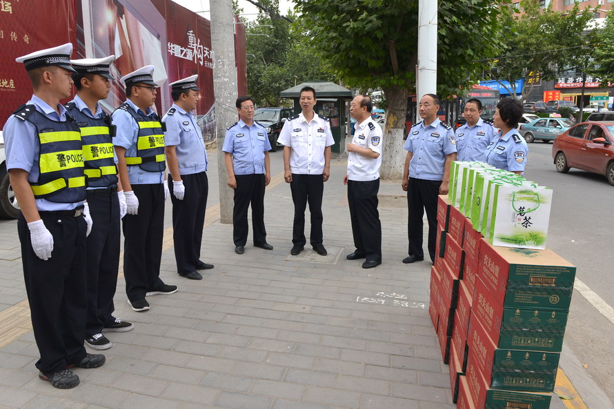 ????慰問過程中,曹小明向堅守崗位的一線民警和交通協(xié)管員表達了親切的問候,“炎炎夏日,你們?nèi)匀辉趫允刂约旱膷徫粡臎]有松懈過,才有了我們這樣安定和諧的天水,我們能夠有安全的交通秩序環(huán)境和你們的辛苦是分不開的,謝謝你們。”曹局長對他們在高溫酷暑天氣條件下堅守崗位、盡職盡責、無私奉獻的精神給予了高度贊揚,并詳細詢問了執(zhí)勤民警的身體、工作和生活情況,為他們送上了礦泉水、綠茶等防暑降溫用品。
