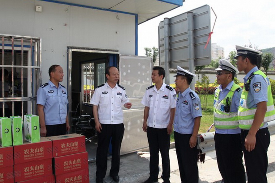 ????天天天水網(wǎng)訊 炎炎夏日,驕陽似火,連日來,我市持續(xù)高溫,更是出現(xiàn)35攝氏度的高溫天氣。全市各級公安機關(guān)民警及協(xié)管員,尤其是堅守在道路一線開展交通安保和執(zhí)法工作的執(zhí)勤交警,他們堅持一絲不茍的工作態(tài)度,戰(zhàn)高溫、斗酷暑,為廣大人民群眾出行提供了一個安全、暢通、有序、和諧的道路交通環(huán)境。7月21日上午,市公安局黨委副書記、常務副局長曹小明,市公安局黨委委員、政治部主任宋心濤在市公安局交警支隊政委毛建民,市局警務保障處處長楊彩琴的陪同下代表市局黨委深入秦州郊區(qū)交警大隊天水郡什字執(zhí)勤點,玉泉高速交警大隊天定高速天水西執(zhí)勤點,看望慰問在高溫環(huán)境下奮戰(zhàn)在路面一線的執(zhí)勤交警和協(xié)管員。?