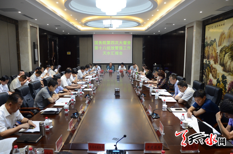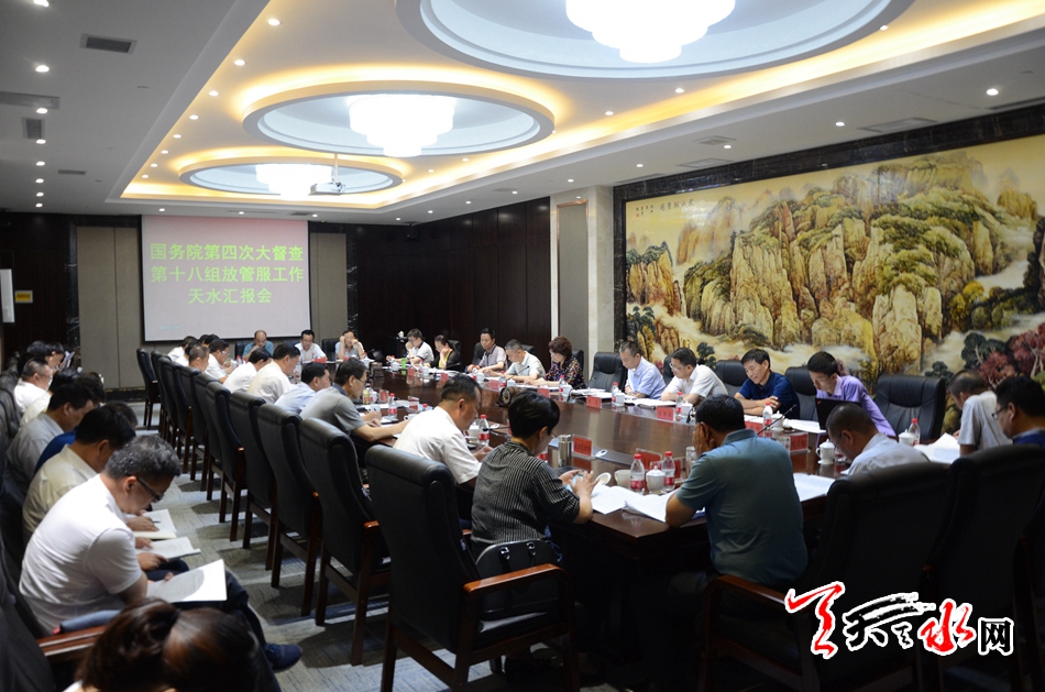 ??? 天天天水網(wǎng)訊【全媒體記者馮麗娟】國務(wù)院第四次大督察第十八督察組來天水督察指導(dǎo)“放管服”改革工作。7月22日,國務(wù)院督察組組長、國家統(tǒng)計(jì)局貿(mào)易外經(jīng)統(tǒng)計(jì)司副司長冶靜怡出席督察工作座談會(huì)。市委副書記、市長王軍作匯報(bào),市委常委、常務(wù)副市長趙衛(wèi)東,市政府秘書長王祥林參加會(huì)議。