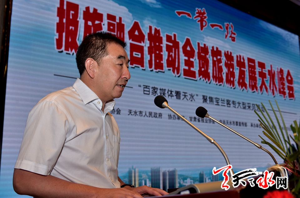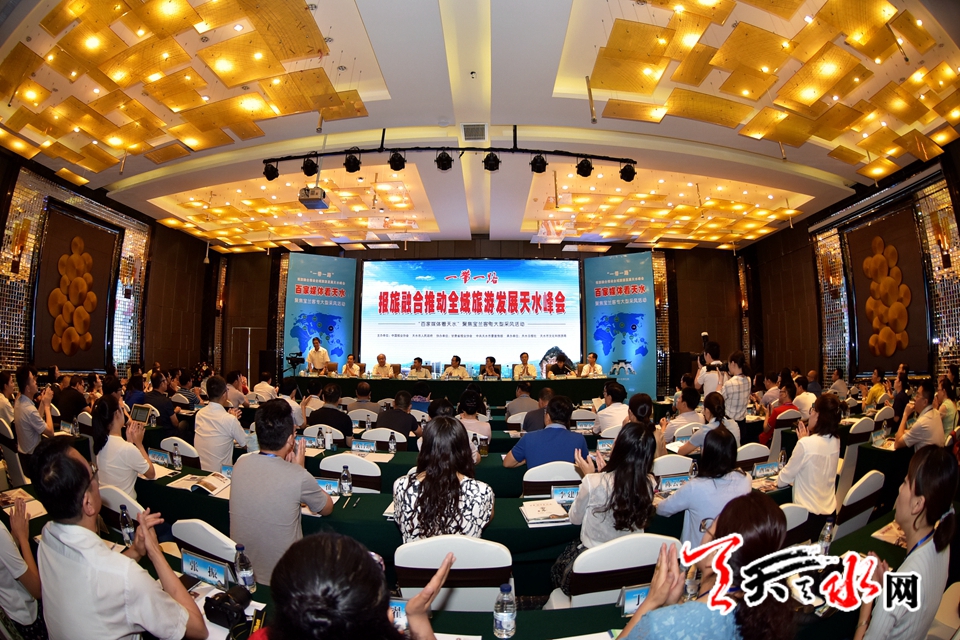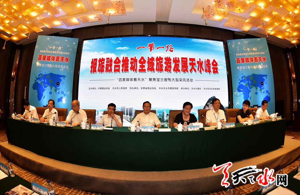 ????天天天水網(wǎng)訊(記者何永德)盛夏七月,瓜果飄香。7月26日,“一帶一路“報(bào)旅融合推動(dòng)全域旅游發(fā)展峰會(huì)在素有“羲皇故里”和“隴上江南”美譽(yù)的甘肅天水盛大舉行。來自《人民日?qǐng)?bào)》《光明日?qǐng)?bào)》《經(jīng)濟(jì)日?qǐng)?bào)》《中國(guó)青年報(bào)》《法制日?qǐng)?bào)》《新民晚報(bào)》《河南日?qǐng)?bào)》和中國(guó)新聞社、新華網(wǎng)等近百家中央和省、市級(jí)媒體的100多名社長(zhǎng)、總編和記者共聚一堂,著眼“一帶一路”建設(shè),交流媒體和旅游融合的新經(jīng)驗(yàn),探索媒體與旅游融合的新模式。