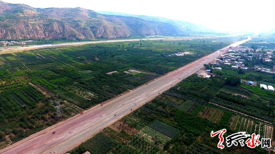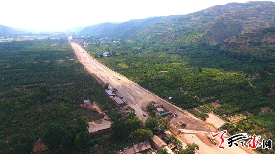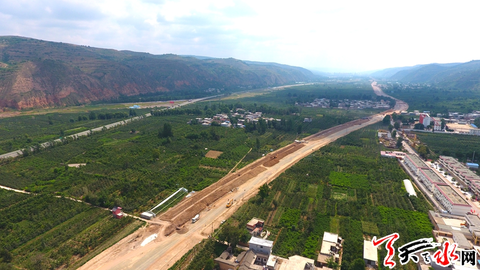 ????一條正在建設(shè)中的公路從秦州區(qū)太京鎮(zhèn)平峪溝向西延伸至藉口鎮(zhèn)五十鋪村方向,在這條公路上,各種大型機械車輛來回穿梭,建設(shè)場面異?;鸨?,而這就是正在加緊建設(shè)中的秦州大道。7月25日,天天天水網(wǎng)對建設(shè)中的秦州大道進行了航拍。