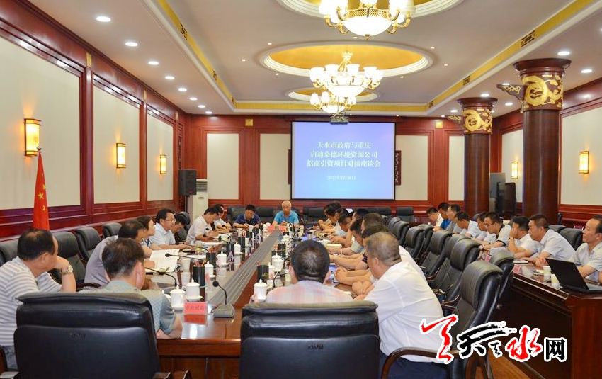 天天天水網(wǎng)訊【記者李欣桐 實習(xí)生牛玨】7月26日,市政府召開招商引資項目對接座談會,與重慶啟迪桑德環(huán)境資源股份有限公司考察團就我市環(huán)保、環(huán)境及市政投資項目進行溝通交流,尋求雙方長期務(wù)實的戰(zhàn)略合作。副市長何東出席座談會。