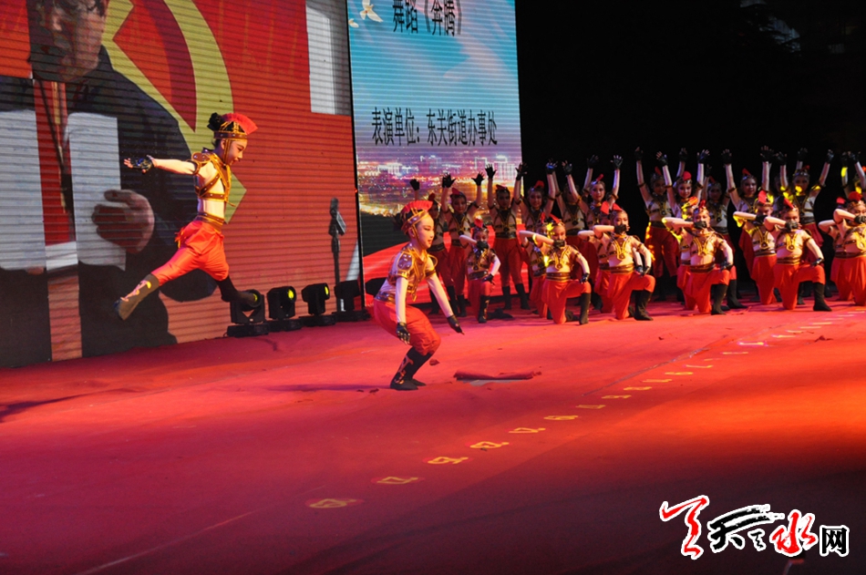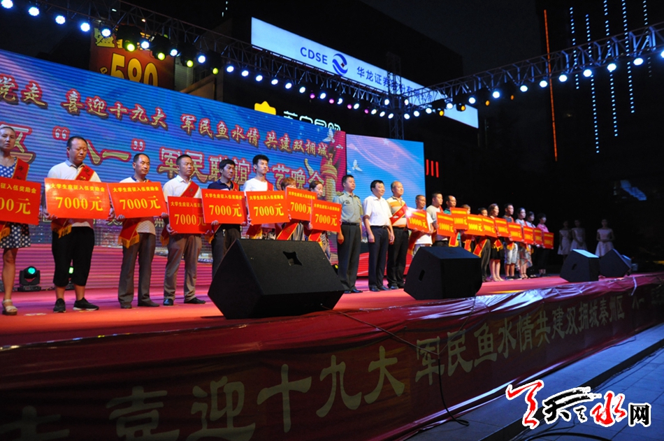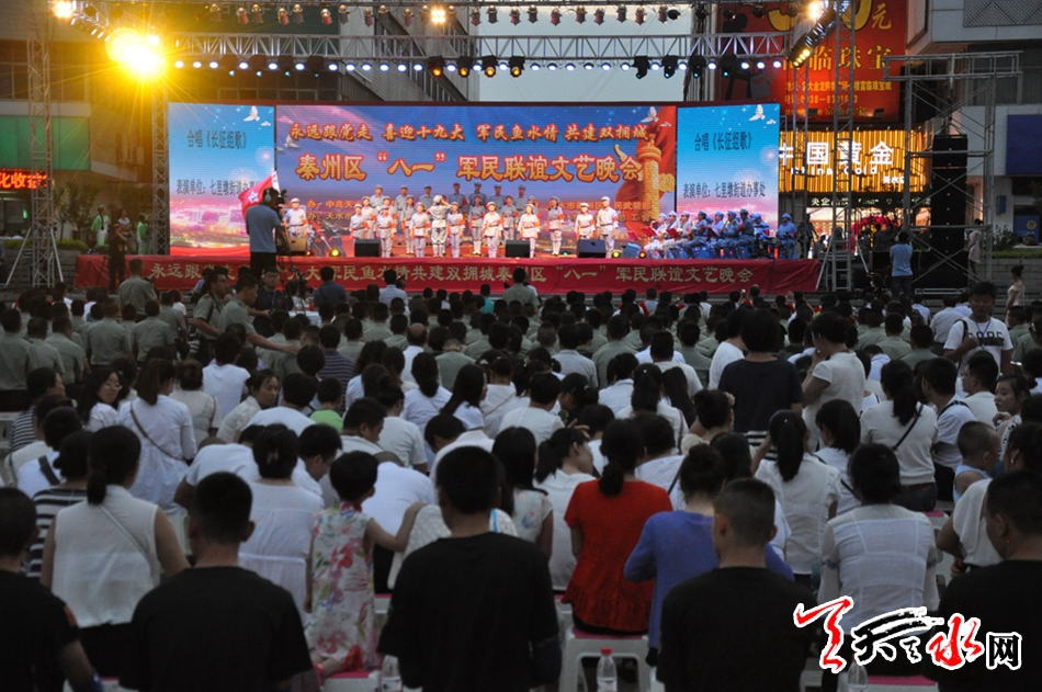 天天天水網(wǎng)訊(記者 劉曉亞)7月30日晚,天水市龍城廣場(chǎng)華燈璀璨,歌舞翩躚,以“永遠(yuǎn)跟黨走、喜迎十九大、軍民魚水情、共建雙擁城”為主題的秦州區(qū)“八一”軍民聯(lián)誼文藝匯演在龍城廣場(chǎng)激情上演,駐市各部隊(duì)官兵代表與各族群眾歡聚一堂,共同慶祝中國(guó)人民解放軍建軍90周年。