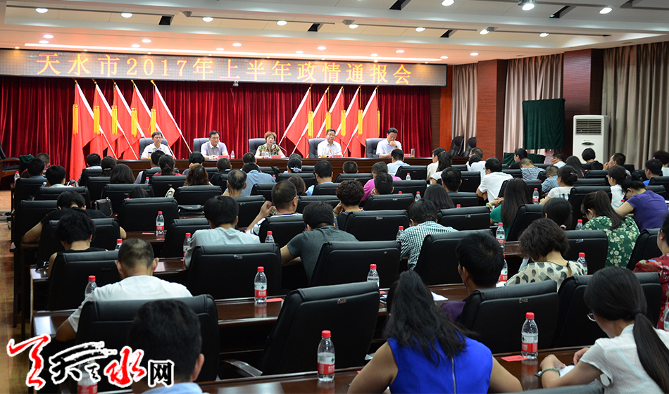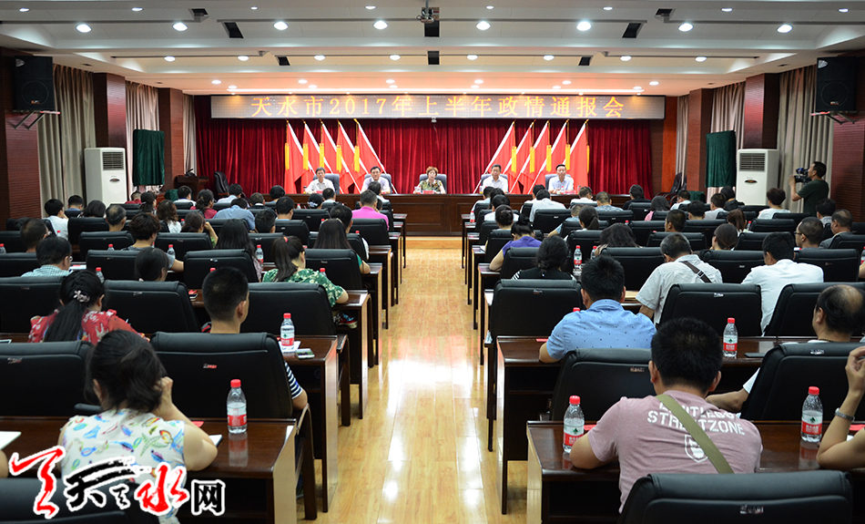 ????天天天水網(wǎng)訊【記者楊璟】8月1日,市委、市政府召開2017年上半年政情通報會,就全市經(jīng)濟社會發(fā)展情況、全市階段性重點工作和重大項目進展情況、社會各界群眾普遍關注的熱點問題進行通報。