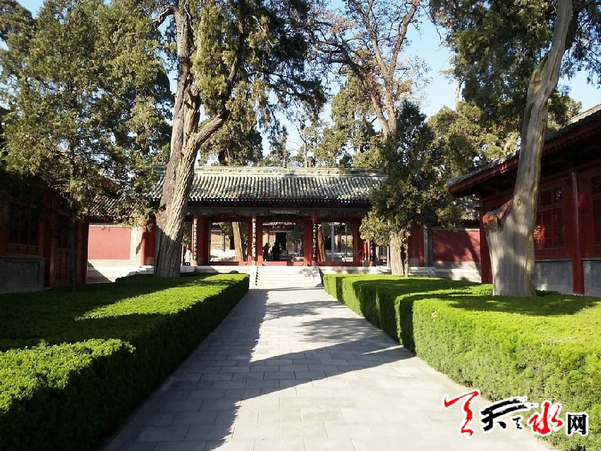 院內(nèi)郁郁蔥蔥的參天古柏,都是明代重修時栽植的。民間傳說原來共有六十四株,是按照伏羲八卦推演的六十四個方位種植的,象征著伏羲六十四卦之數(shù)。歷經(jīng)浩劫之后,現(xiàn)僅存37株。冬夏常青,生機盎然。明人張鵬在《太昊廟樂章?迎神曲》里描述:“來何從兮去何適,松柏穆穆兮鳥雀飛。”清朝李在《重修伏羲廟記》的碑文中寫道:“夫古柏蒼鮮,負山帶河,稱隴右勝跡?!泵駠鴷r張揚名在《到西北去》一書中記載:“伏羲廟內(nèi),古柏森森,令人一入廟門即發(fā)生一種景仰無似的直覺。”