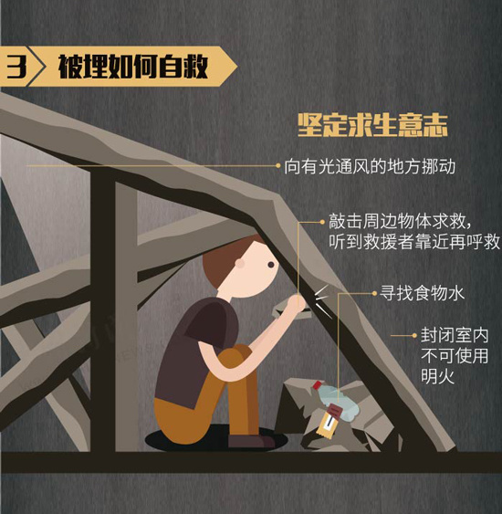 在發(fā)生破壞性地震的地區(qū),從地震發(fā)生到房屋倒塌,一般有十幾秒種的時間,作為個人,應(yīng)在瞬間冷靜做出避險的抉擇。?