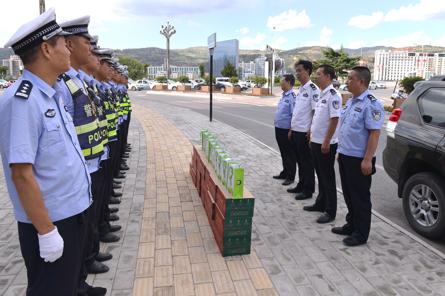 ??? 天水市公安局和交警支隊領(lǐng)導(dǎo)深入基層大隊勤務(wù)一線,現(xiàn)場檢查各大隊落實省公安廳近期下發(fā)的三個通告精神、整治“六類”重點車輛、開展嚴(yán)查嚴(yán)懲嚴(yán)重交通違法專項行動等工作情況,詳細了解勤務(wù)安排和執(zhí)勤民警身體狀況,并為他們送去了飲品、茶葉等防暑降溫慰問品。