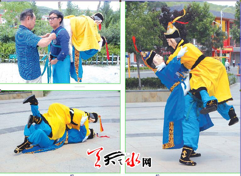 ????在近兩年的清水軒轅文化旅游節(jié)上,木人摔跤都作為重要的非物質(zhì)文化進行展演,并且由原來的一人表演發(fā)展到兩人或更多的人同時表演,也許就是因為木人摔跤不同于普通的社火節(jié)目,表演又需要多種技巧的融合,所以一經(jīng)申報,便被列為省級非物質(zhì)文化遺產(chǎn)項目。記者在網(wǎng)絡(luò)搜索中輸入“木人摔跤”后看道,清水木人摔跤的新聞被中新網(wǎng)、鳳凰網(wǎng)等各大媒體爭相轉(zhuǎn)載。緱紅斌也表示,自己表演了多少場木人摔跤,雖已無法計數(shù),但不管去哪里表演,觀眾的熱情度都很高。在不久前剛結(jié)束的2017年《絲路記憶》天水非物質(zhì)文化遺產(chǎn)敦煌展演中,清水木人摔跤就大獲好評。