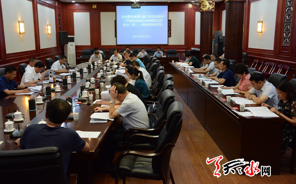 ????天天天水網(wǎng)訊【記者何郁】8月18日,我市召開落實(shí)市委七屆三次全會精神第三季度經(jīng)濟(jì)分析調(diào)度暨建立三重三一清單安排部署會議。市委常委、常務(wù)副市長趙衛(wèi)東強(qiáng)調(diào),要認(rèn)真貫徹落實(shí)省委十三屆二次全會和市委七屆三次全會精神,進(jìn)一步深入分析當(dāng)前我市經(jīng)濟(jì)運(yùn)行存在的困難問題和面臨的嚴(yán)峻形勢,按照“止滑、穩(wěn)增、向好、進(jìn)位”的總體要求,決戰(zhàn)三季度,為確保全面完成全年目標(biāo)任務(wù)奠定基礎(chǔ)。