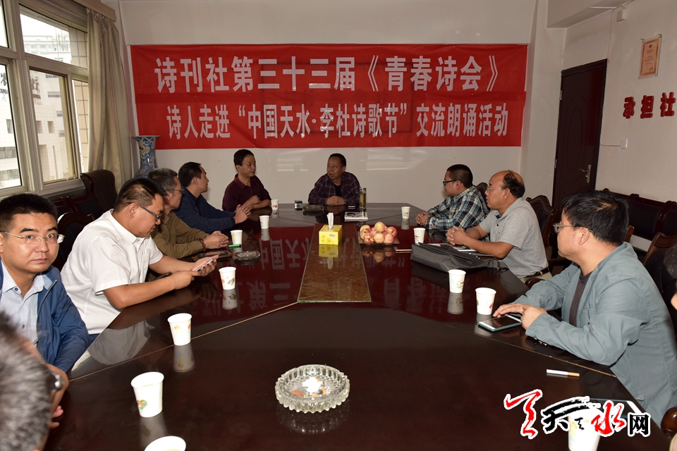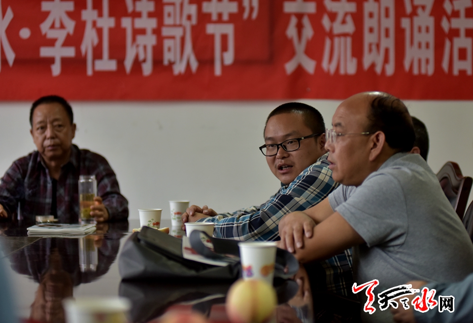 天天天水網(wǎng)訊【記者 何永德】8月26日, 《詩(shī)刊》社第三十三屆“青春詩(shī)會(huì)”詩(shī)人走進(jìn)“中國(guó)天水·李杜詩(shī)歌節(jié)”舉辦交流朗誦活動(dòng),著名詩(shī)人、天水詩(shī)歌學(xué)會(huì)顧問(wèn)、天水日?qǐng)?bào)社副總編輯王若冰及天水詩(shī)歌學(xué)會(huì)部分會(huì)員參加了活動(dòng)。