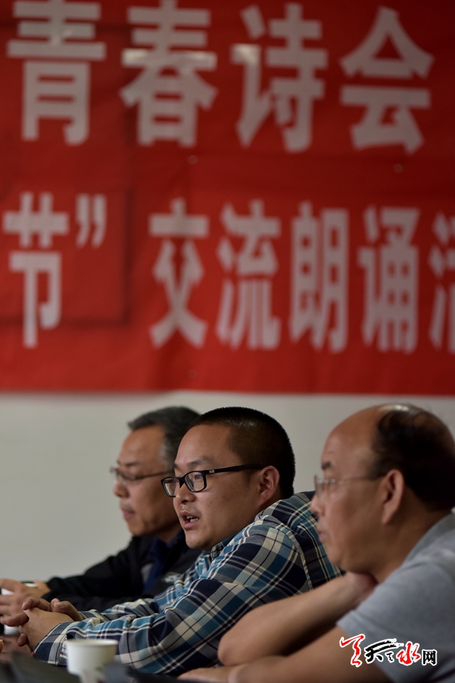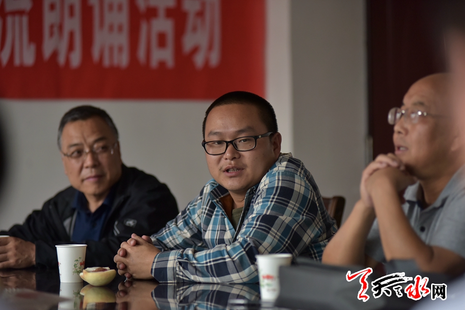 剛參加完 《詩(shī)刊》社第三十三屆《青春詩(shī)會(huì)》的兩位云南青年詩(shī)人胡正剛、張雁超蒞臨現(xiàn)場(chǎng),就“中國(guó)天水·李杜詩(shī)歌節(jié)”的影響及創(chuàng)作環(huán)和創(chuàng)作方向作了交流發(fā)言。