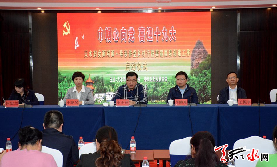 天天天水網(wǎng)訊【記者童強(qiáng)】9月4日,全市“巾幗心向黨 喜迎十九大”天水婦女面對面·母親講堂暨美麗庭院創(chuàng)建工作啟動儀式在天水賓館舉行。市委常委、組織部長王正茂,市委常委、副市長李曉東,市人大常委會副主任王曉琴,市政協(xié)副主席王振宇參加啟動儀式。
