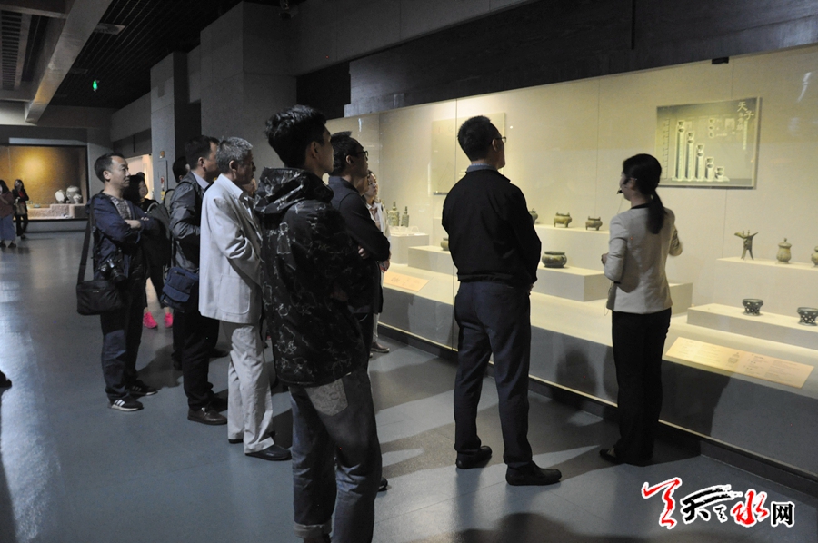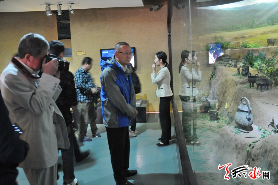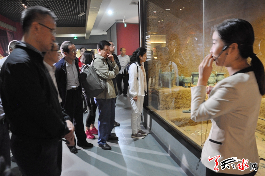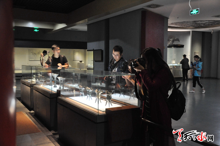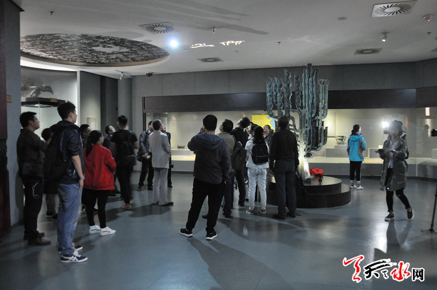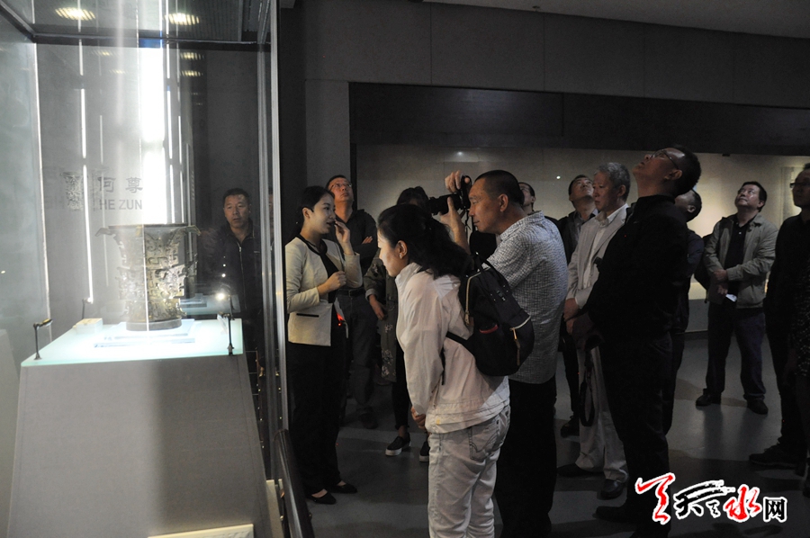 在參觀中,采訪團(tuán)一行詳細(xì)聆聽講解員的介紹,認(rèn)真了解不同時(shí)期、不同風(fēng)格青銅器的形態(tài)、作用以及它所蘊(yùn)函的文化底蘊(yùn)。數(shù)量龐大,做工精品的青銅器精品和銘文所顯現(xiàn)的周秦文化深深地吸引著采訪團(tuán)的每一位成員,他們用鏡頭記錄著每一精品。