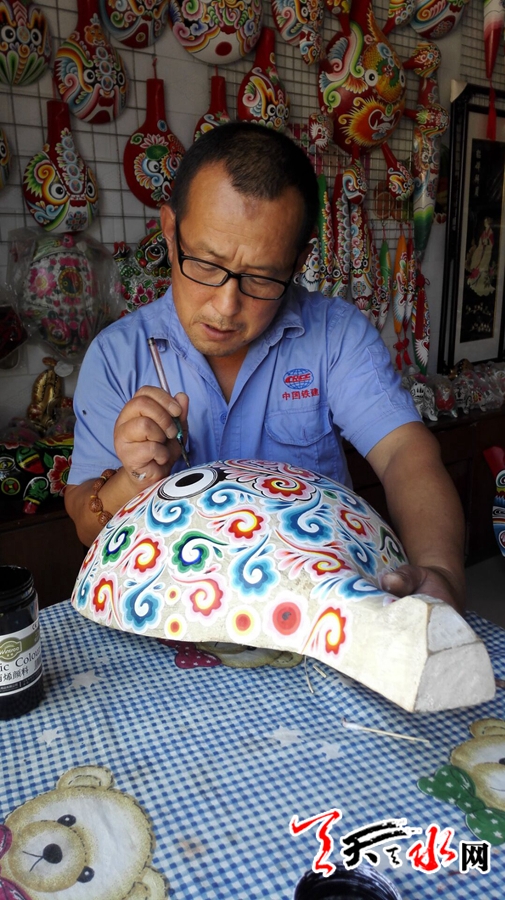 ??? 鳳翔民俗文化的代表之作要數(shù)泥塑。鳳翔彩繪泥塑主要分布在城關(guān)鎮(zhèn)六營村及周邊地區(qū),歷史悠久,源遠(yuǎn)流長。相傳朱元璋的第六營士兵在打完仗后,在此安家落戶,這個村便認(rèn)“六營”為名。這些士兵大多來自江西景德鎮(zhèn),有制瓷手藝,或許為了生計(jì),或許為了寄托對故土、家人的思念之情,他們按照制陶的手法,就地取材,以當(dāng)?shù)靥赜械暮谟桶灏逋?、棉花、糯米?種天然材料配制成泥,在捏制的過程中充分汲取了石刻、板畫、剪紙和刺繡中的紋飾,集奇異、熱烈、大氣、憨實(shí)為一身,造型夸張,色彩鮮艷,深受百姓喜愛的花鳥蟲魚、人物、動物形象,在家中觀賞,或者送給兒孫,或者送給親朋好友,后來衍生出了祈子、護(hù)生、辟邪、鎮(zhèn)宅、納福等諸多寓意。