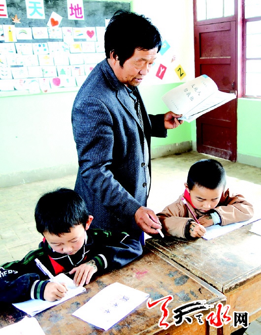 30年前,楊銀德剛來到楊山教學(xué)點任教時,學(xué)校僅有6名學(xué)生。后來,他挨家挨戶上門動員村民們送孩子上學(xué),一趟,兩趟,三趟……在他的努力下,村里的20幾個適齡女娃都上了學(xué),還有十幾個輟學(xué)在家的男孩也重新走進(jìn)了校門。那個學(xué)期期末考試時,教室里學(xué)生的數(shù)量已經(jīng)增加到36人。從那時起,楊山教學(xué)點再沒有發(fā)生學(xué)生輟學(xué)的現(xiàn)象。2007年新學(xué)校建成后,學(xué)生數(shù)量猛增到60人,那也是楊山教學(xué)點學(xué)生最多的時期。