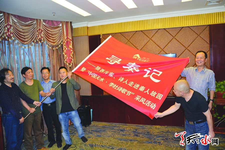9月16日晚,參加采風(fēng)活動(dòng)的詩(shī)人、作家與天水當(dāng)?shù)氐脑?shī)人齊聚一堂,天水日?qǐng)?bào)社社長(zhǎng)袁東風(fēng)為陜西采風(fēng)團(tuán)代表閻安等人授予了寫(xiě)有此次采風(fēng)活動(dòng)主題的旗幟,代表采風(fēng)活動(dòng)正式啟動(dòng)?;顒?dòng)期間,還將舉辦兩地作家、詩(shī)人的交流朗誦會(huì)等。
